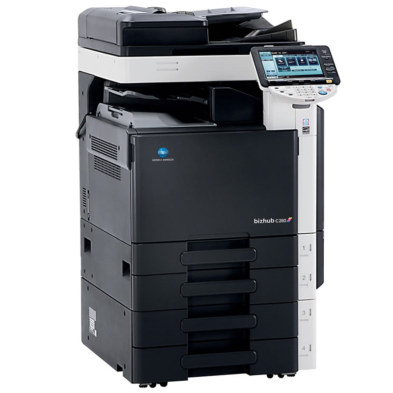 Multifuncțional laser color Konica Minolta Bizhub C280, recondiționat profesional. Viteză 28 ppm color și alb-negru, format A6-A3, duplex automat, scanare în rețea (FTP, SMB, USB, TWAIN). Rezoluție imprimare 1800×600 dpi. Scanare rapidă până la 70 opm. Garanție 12 luni.