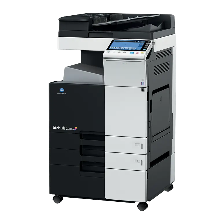 Multifuncțional laser color Konica Minolta Bizhub C284e, recondiționat profesional. Versiunea îmbunătățită a seriei C284 cu panou touch screen, viteză 28 ppm color și alb-negru, format A3, duplex automat, scanare avansată în rețea. Ideal pentru birouri cu volum mediu-mare. Garanție 12 luni.